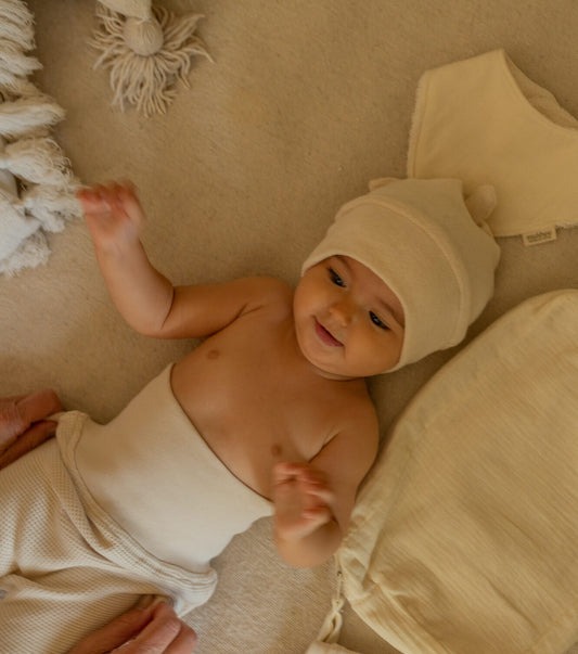 En Mukhee, nos comprometemos a utilizar únicamente los mejores tejidos naturales. Nuestro algodón orgánico certificado proviene de cultivos que respetan el medio ambiente y promueven la sostenibilidad. Este compromiso con la calidad y la sostenibilidad nos permite ofrecer productos que no solo son buenos para tu bebé, sino también para el planeta.