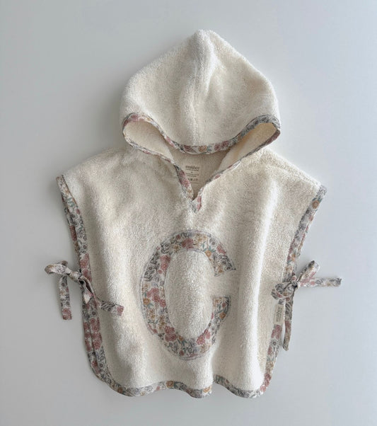 Poncho toalla Personalizado| Raíz | Flores ocre y azul