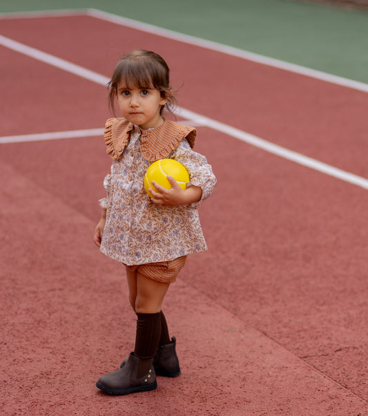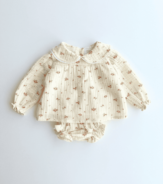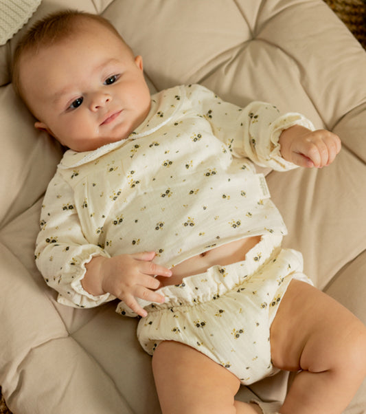 Conjunto blusa y culetín | Bruma | Mini flor ceniza
