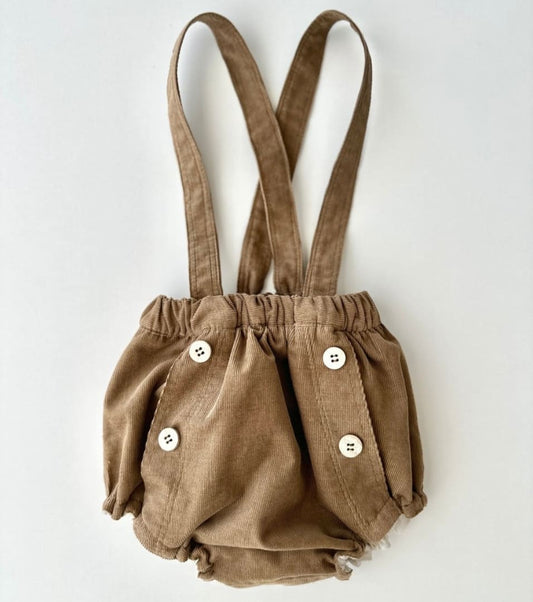 Bombacho con tirantes en pana fina de algodón orgánico | Canela | Marrón