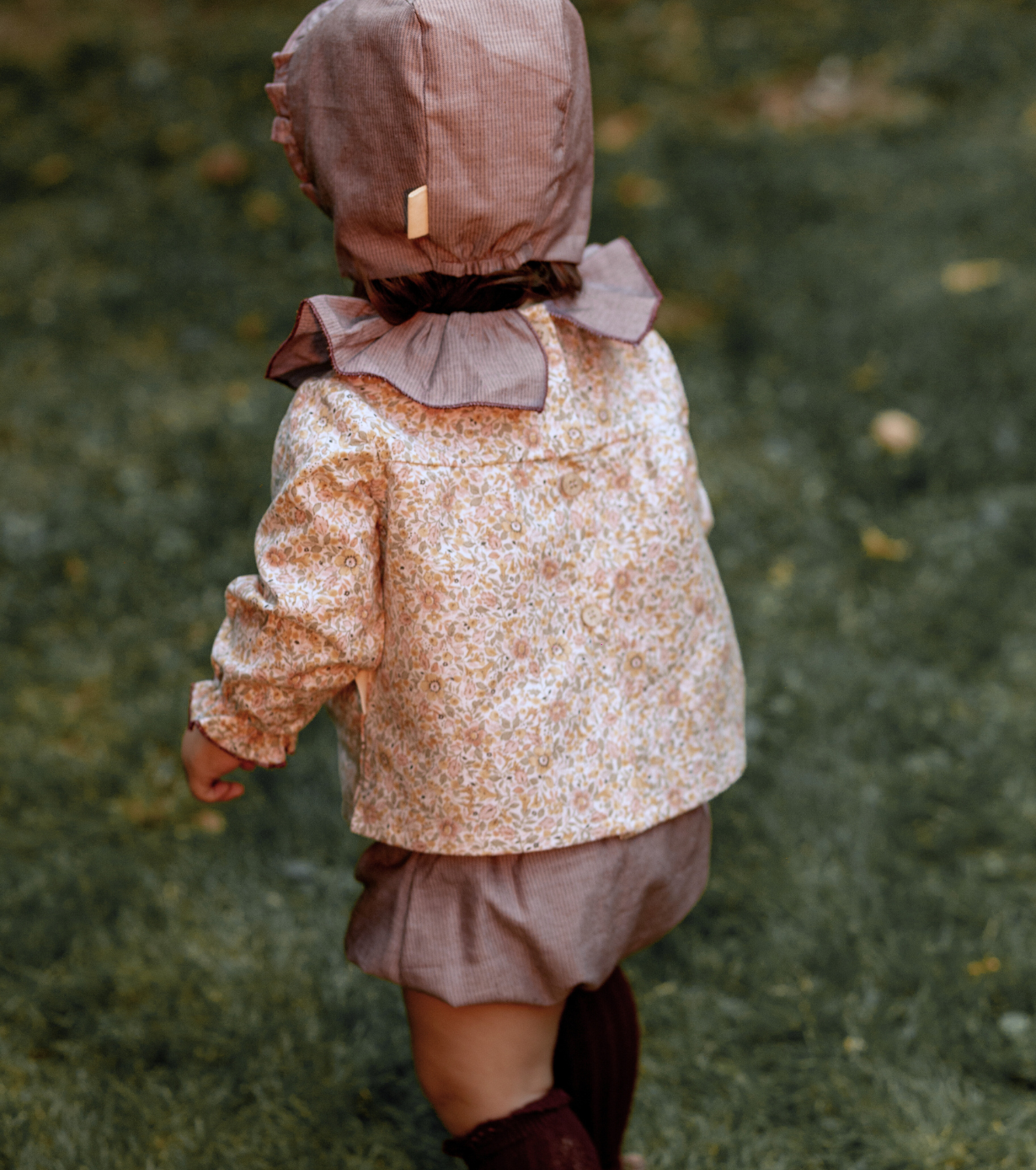 Este tejido de la colección Savia tiene prestancia a la vez que es muy ligero y original, ideal para esta época del año. El bombacho tiene un color muy favorecedor y se adapta perfectamente tanto a ocasiones más especiales como para uso diario. Todo el interior va forrado con un voile también de algodón orgánico. Al ser 100% algodón orgánico, la prenda cuida de la piel del peque además de ser muy transpirable y autorregular la temperatura del cuerpo.