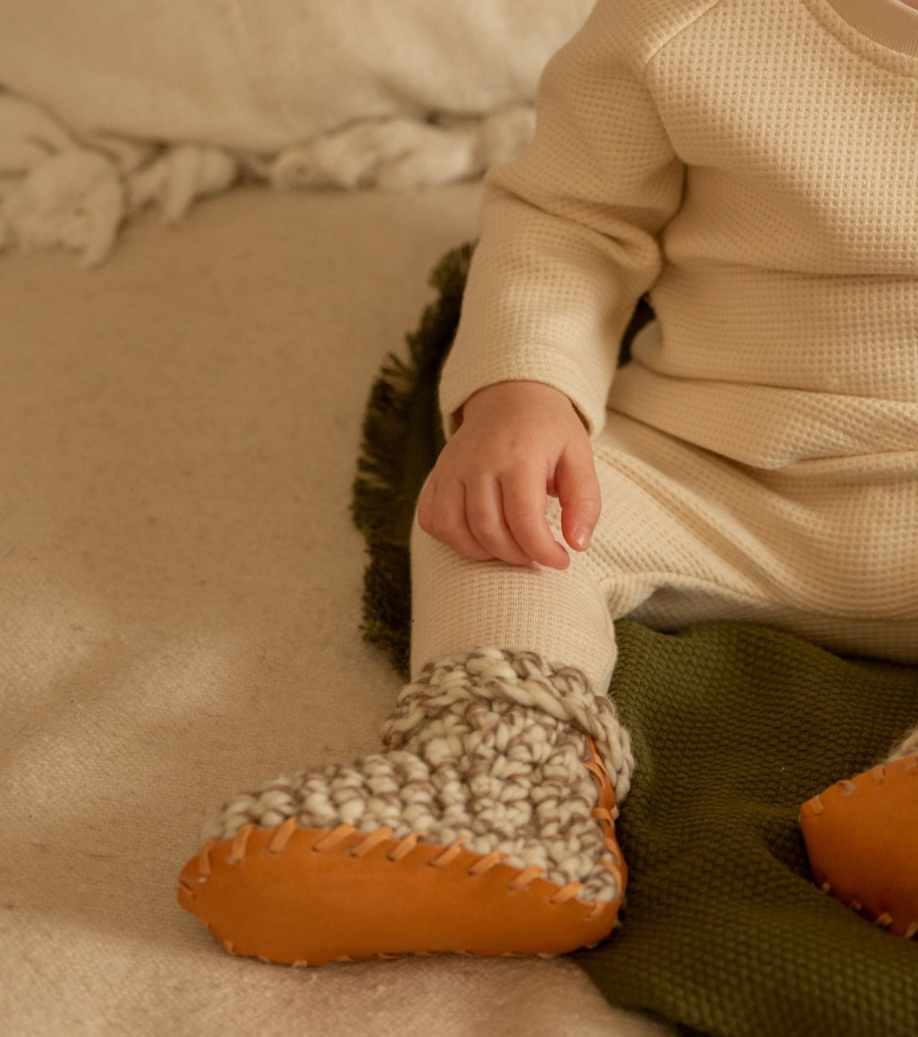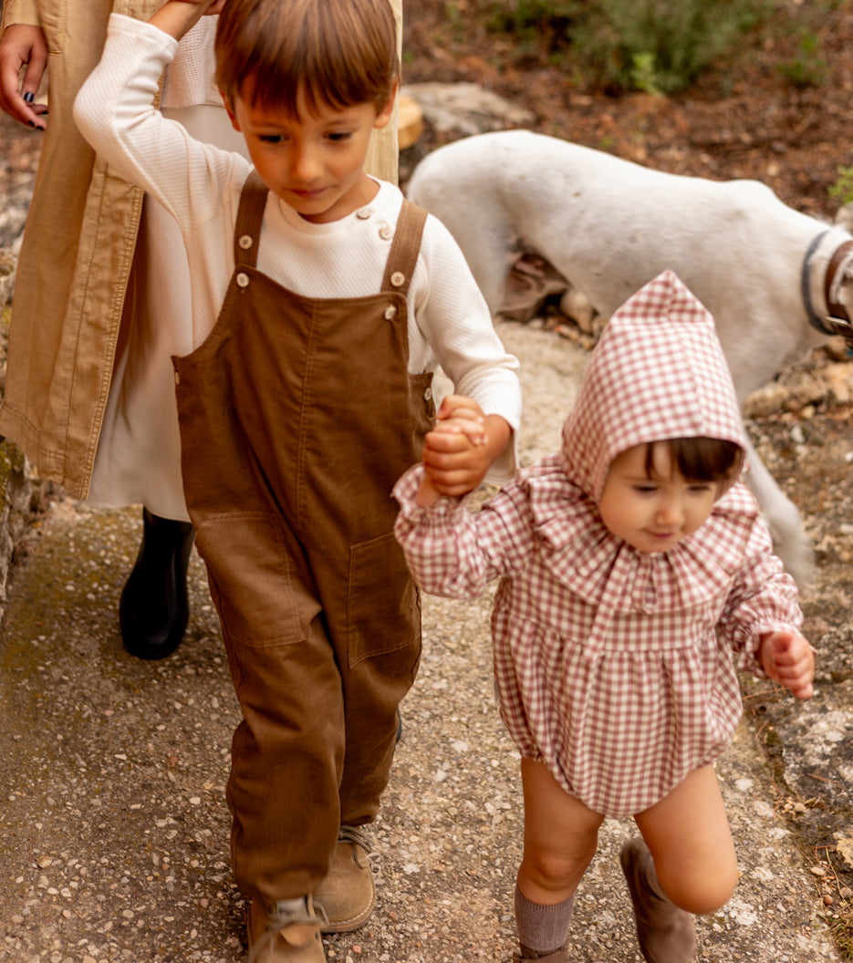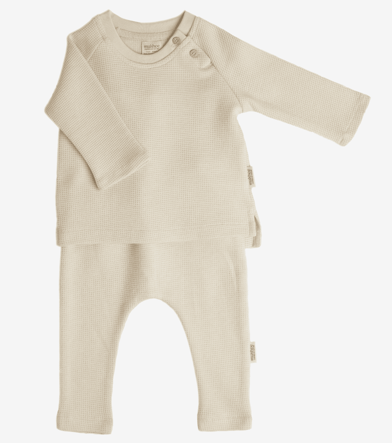 Camiseta nido de abeja para bebé confeccionada 100% en punto de algodón orgánico certificado GOTS. El tejido es natural, no está blanqueado, y como resultado a menudo podrás ver algunas semillas de la planta de algodón en la tela. Es una prenda muy calentita, súper suave y muy agradable al contacto con la piel del niño.