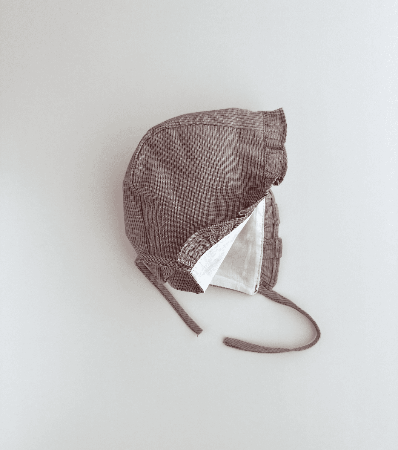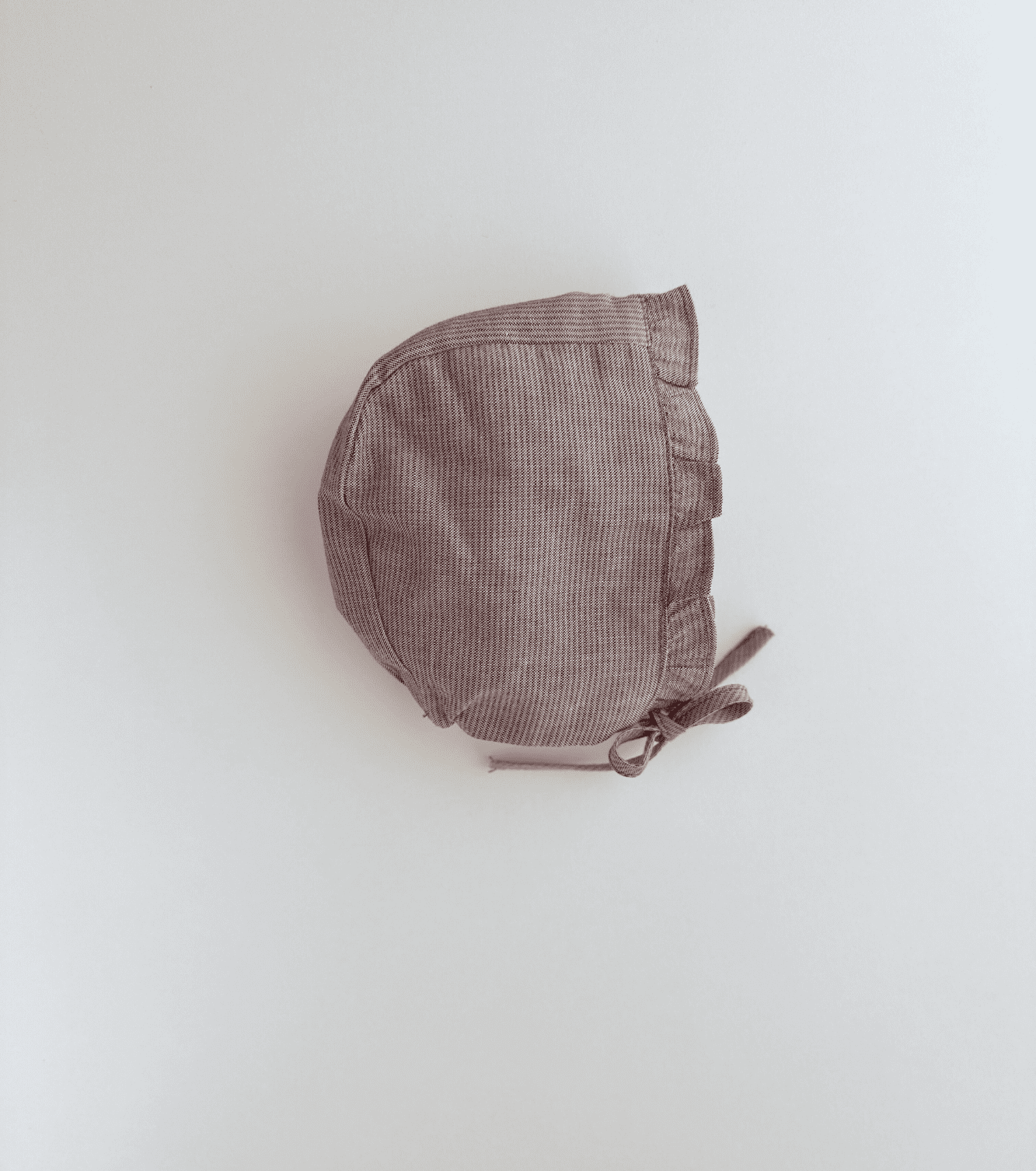 Capota en gabardina de algodón orgánico 100% en rayas burdeos. Forrado en voile de algodón orgánico.