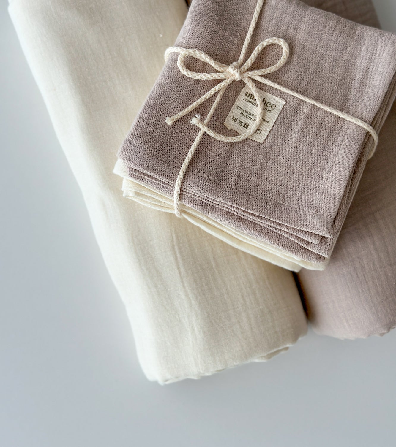 - Pack Color Topo: incluye una muselina en color topo y otra en color ecru/crudo