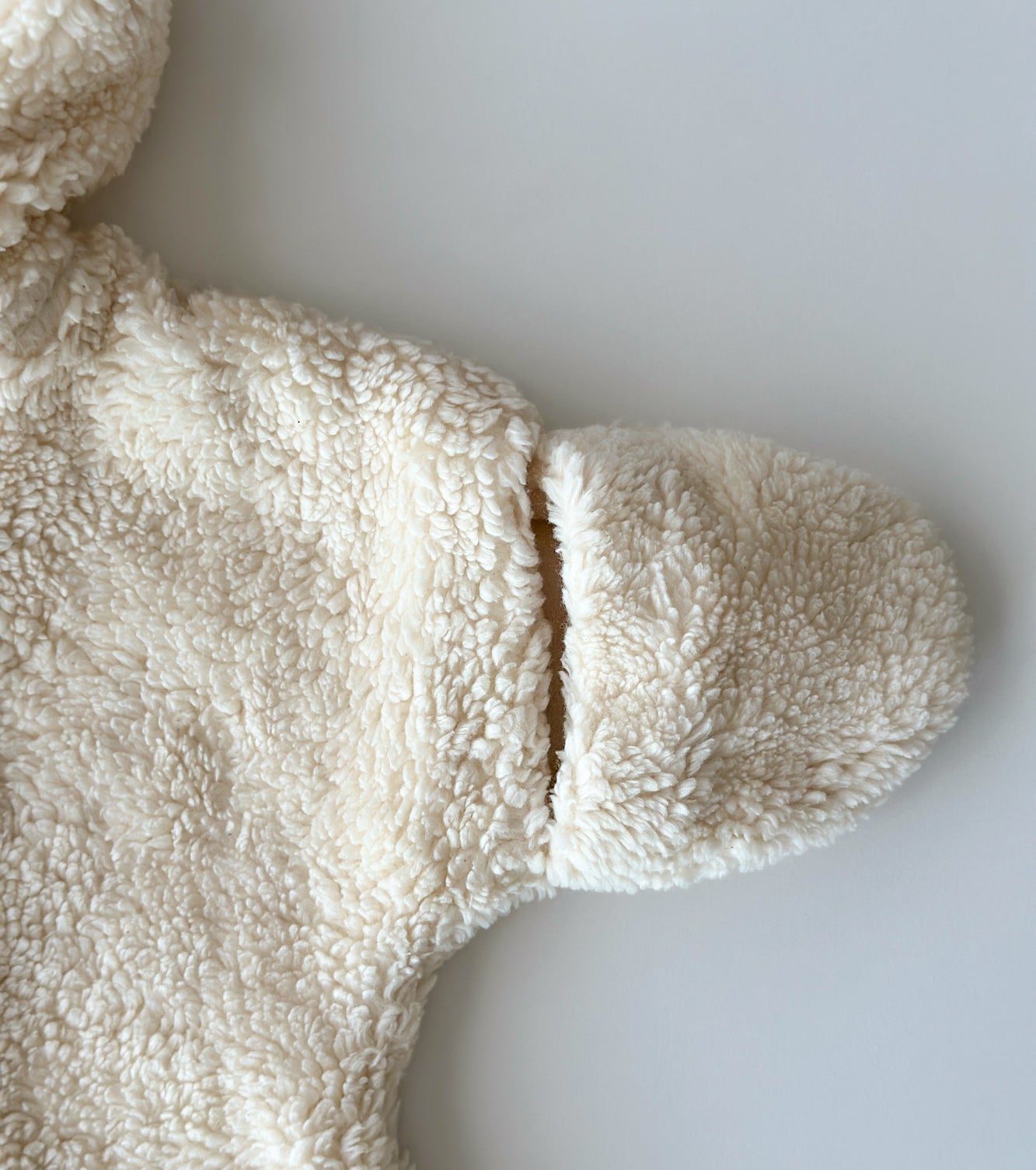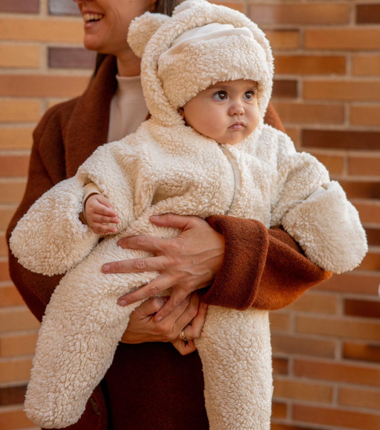 Un saco suave y esponjoso en talla única que abarca desde recién nacido y hasta los 6 meses. Con capucha con orejitas y manoplas abiertas para favorecer que el bebé no pierda movilidad ni vea limitados sus sentidos.